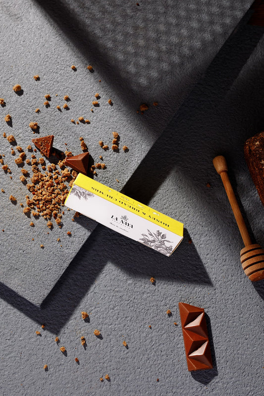 Bean-To-Bar melkchocolade reep met honing & broodkruim