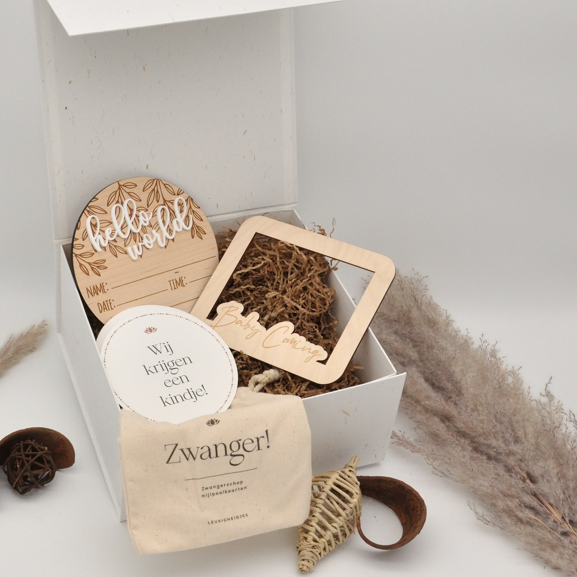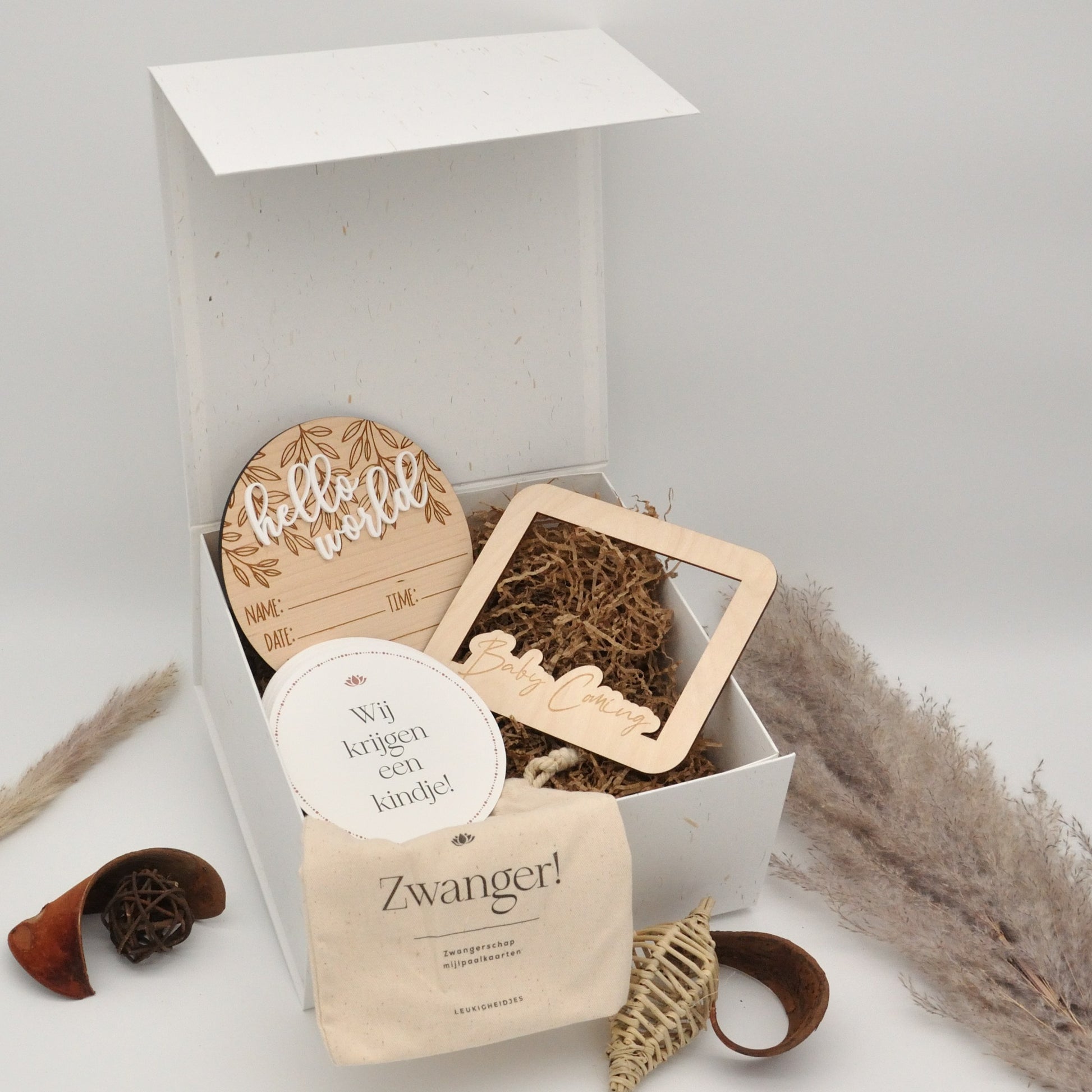 Pendant la grossesse, vous comptez avec impatience l'arrivée de votre petit. Ce coffret cadeau contient des éléments utiles pour enregistrer et annoncer votre grossesse et la naissance de votre bébé d'une manière spéciale.