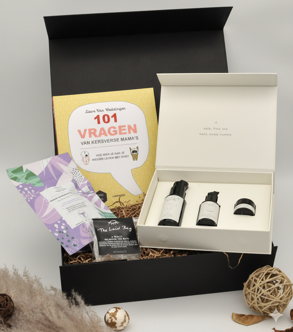 EmballageTous nos coffrets cadeaux sont offerts et expédiés dans une boîte cadeau luxueuse , qui peut être offerte directement à la (future) maman. De plus, vous pouvez ajouter une carte avec votre propre texte qui sera écrit à la main par l'équipe Wowwy.