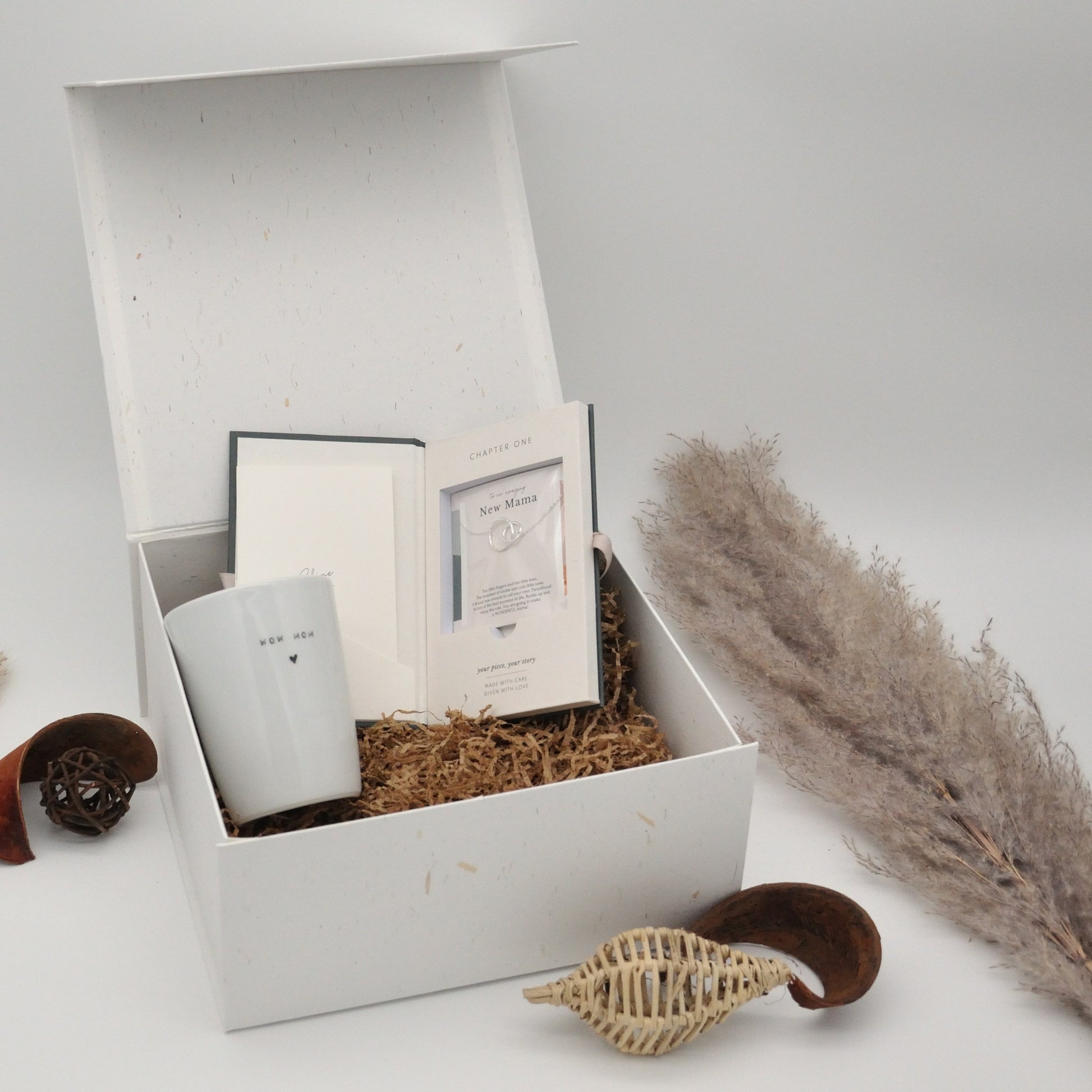 Devenir mère est un événement joyeux et cela doit être célébré ! Avec ce coffret cadeau plein de jolies choses, maman pourra montrer à quel point elle est fière d'être maman !