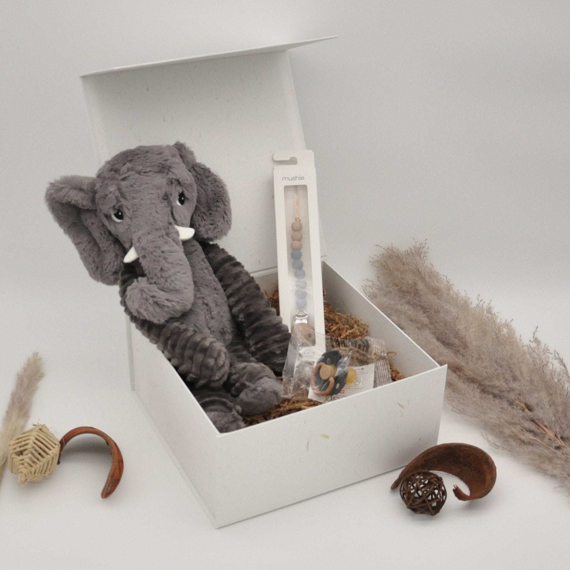 - Olifant knuffel: Met zijn grote langharige fluwelen oren is deze mooie olifantenknuffel van Les Déglingos een ideaal geschenk! Gemakkelijk te vangen door zijn grote poten of zijn romp, volgt deze knuffel je kleintje overal! Afmeting: 35 cm staand/26cm zittend. Samenstelling: katoen, polyester.